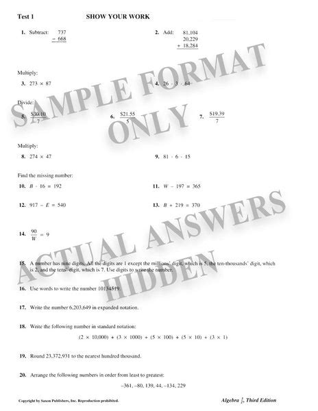 Free PDF saxon math answer key algebra1 Hardcover Gutenberg